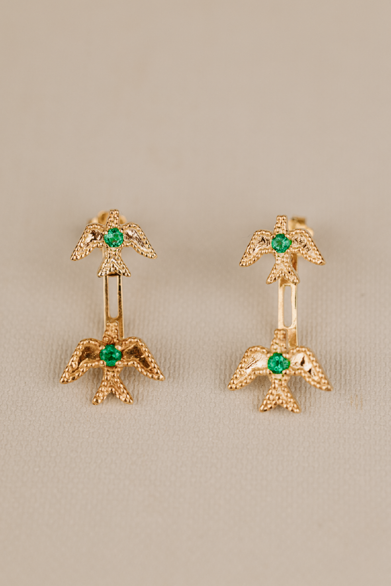 Radiant with every gleam, the Back & Front Phoenix Earrings celebrate strength, transformation, and bold elegance. Each earring features multiple finely crafted phoenixes with gemstones that catch the light from every angle, creating a dynamic, sophisticated effect. Designed to shine from both front and back, these earrings exemplify artisanal precision and contemporary style, making them the perfect accessory for those who want to stand out with grace and confidence.