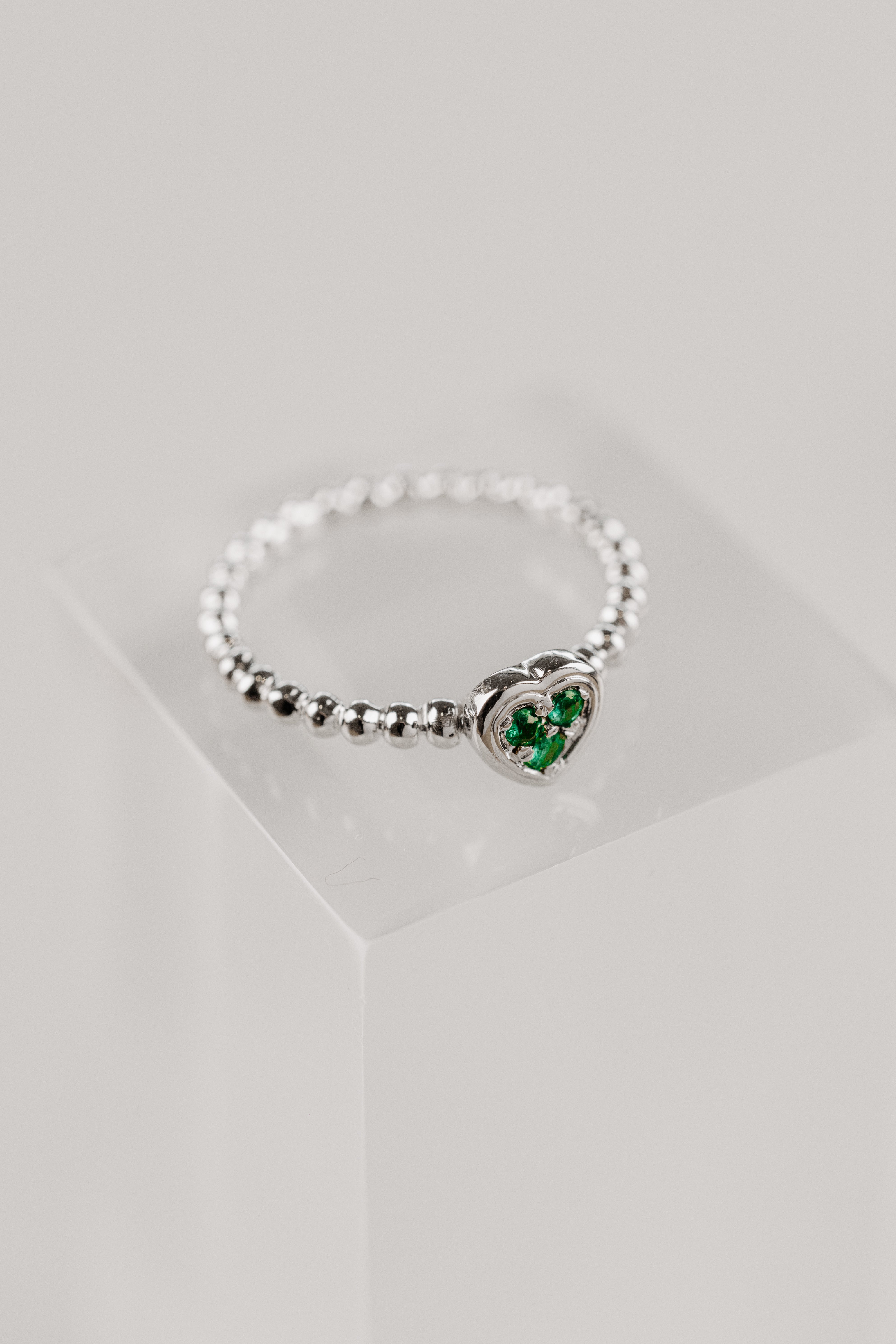 The Heart Dots Ring celebrates the elegance of love and the delicacy of details. Its design features a band of tiny beads, culminating in a central heart that symbolizes connection and the purity of emotion. The sparkle of its stone adds sophistication, while its subtle, romantic form evokes tenderness and strength of the heart.