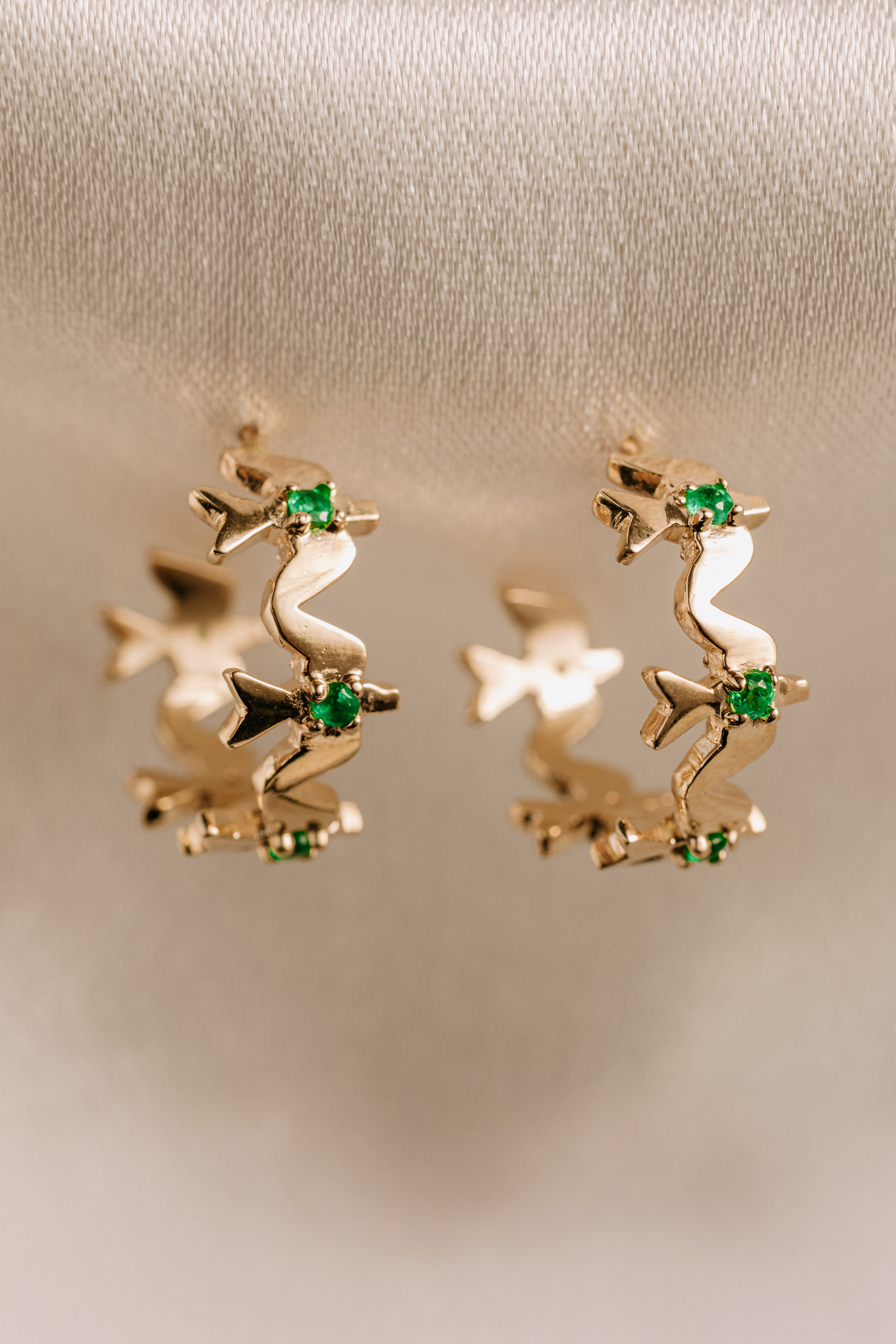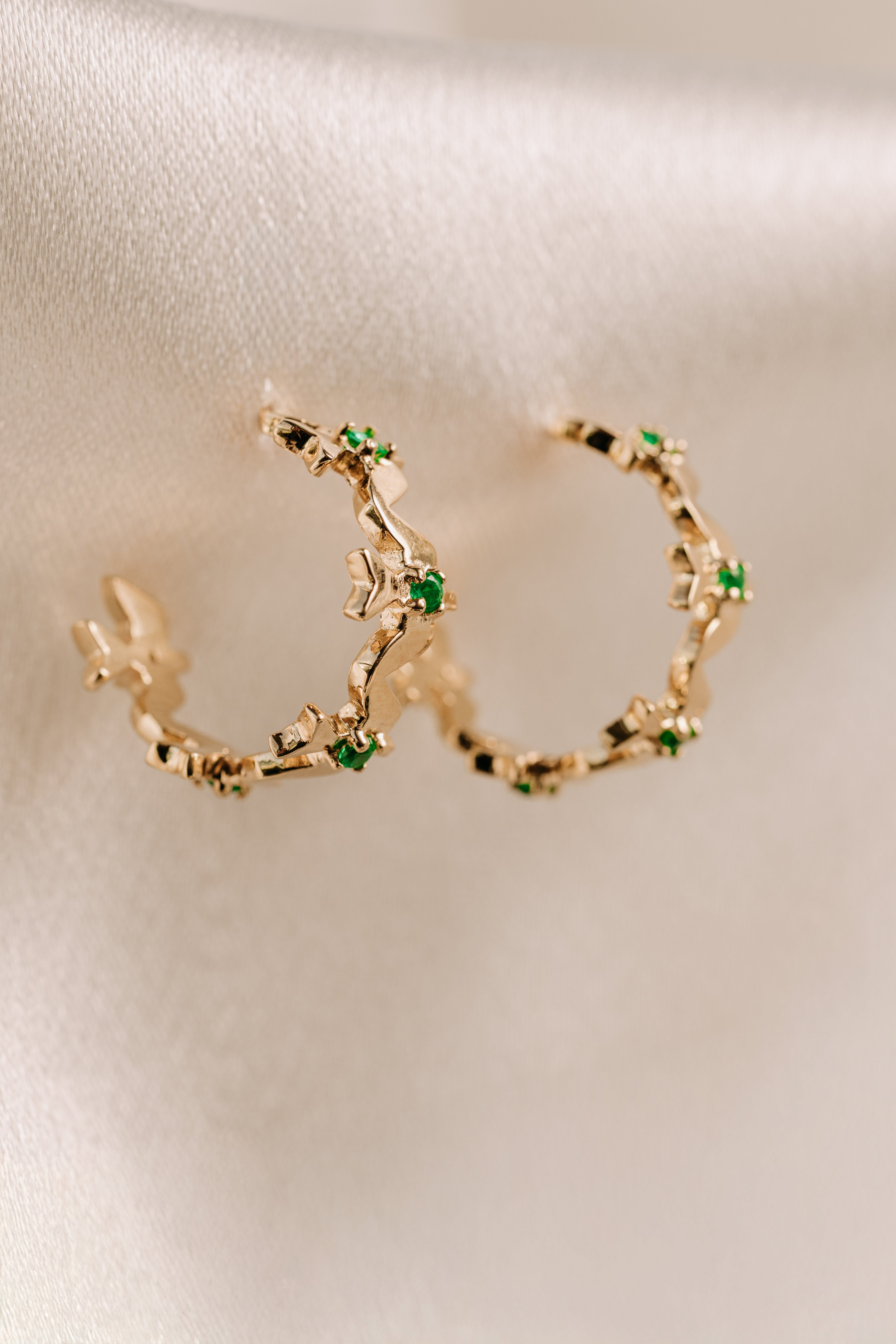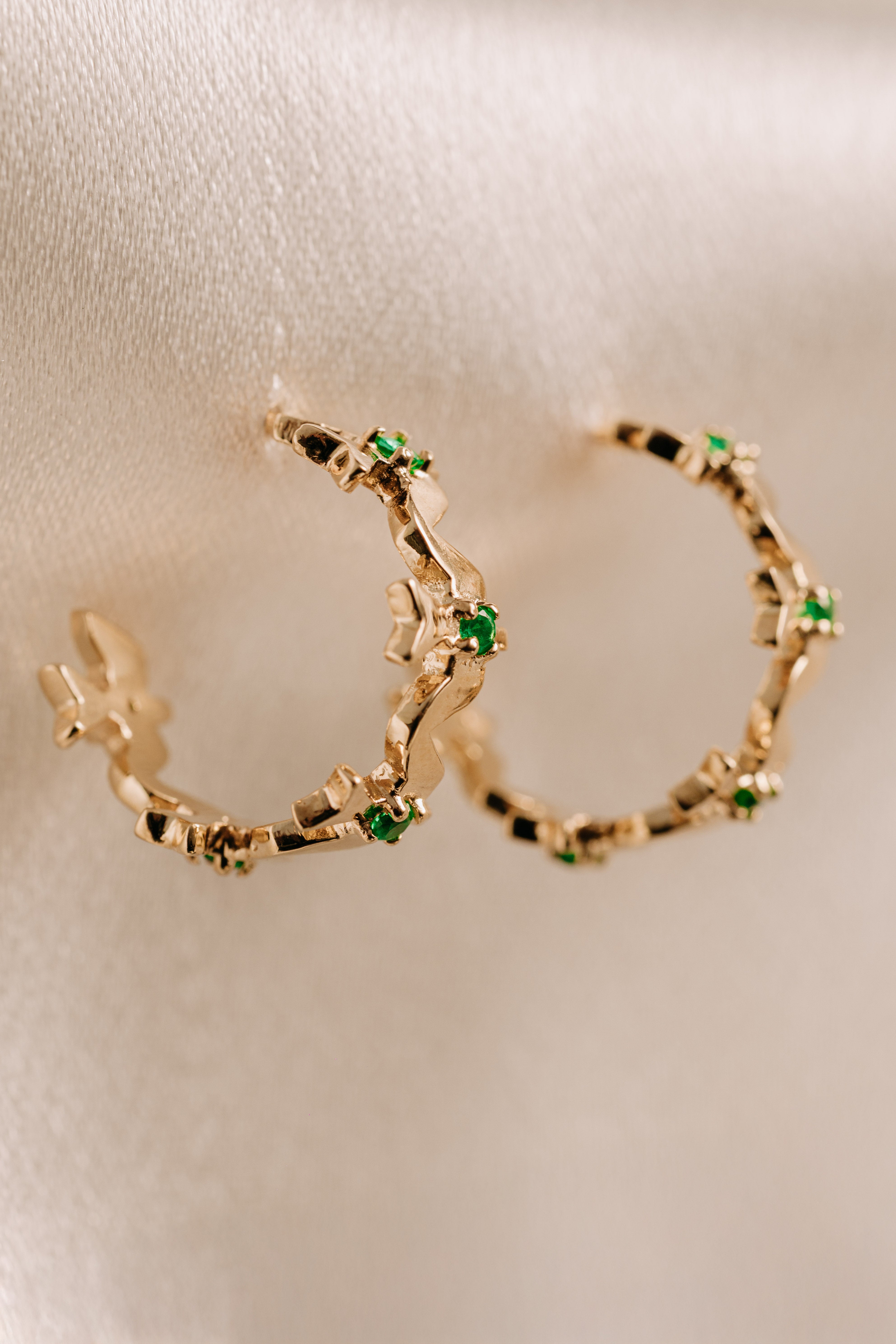 Delicate and full of symbolism, the Full Phoenix Hoops celebrate strength, renewal, and eternal beauty. Each hoop is adorned with small phoenixes and gemstones that sparkle with every movement, transforming these earrings into a display of light and artisanal detail. Their lightweight, refined design lets the mythical birds and gemstones take center stage, adding sophistication and magic to any look.